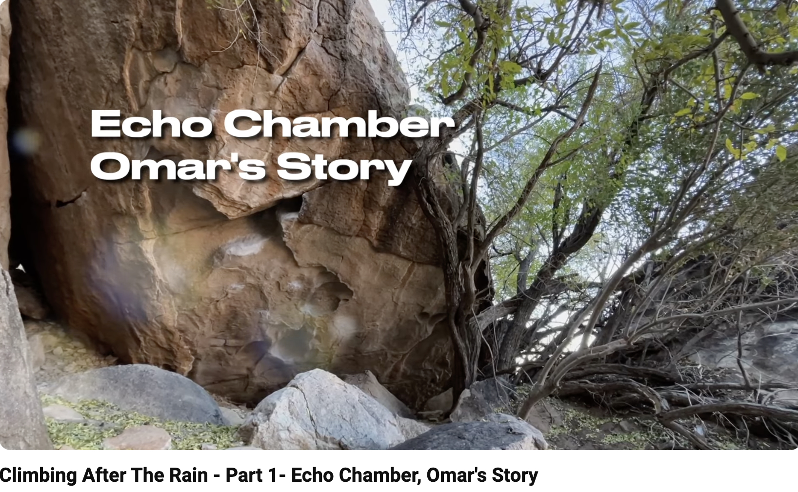 On the last day of his trip, Omar was determined to send Echo Chamber. It had rained the day before but he went for it anyway. On the top out, holds broke and he soared over his spotter, missing the crash pads. Omar broke both legs, heels, and shattered his ankles.